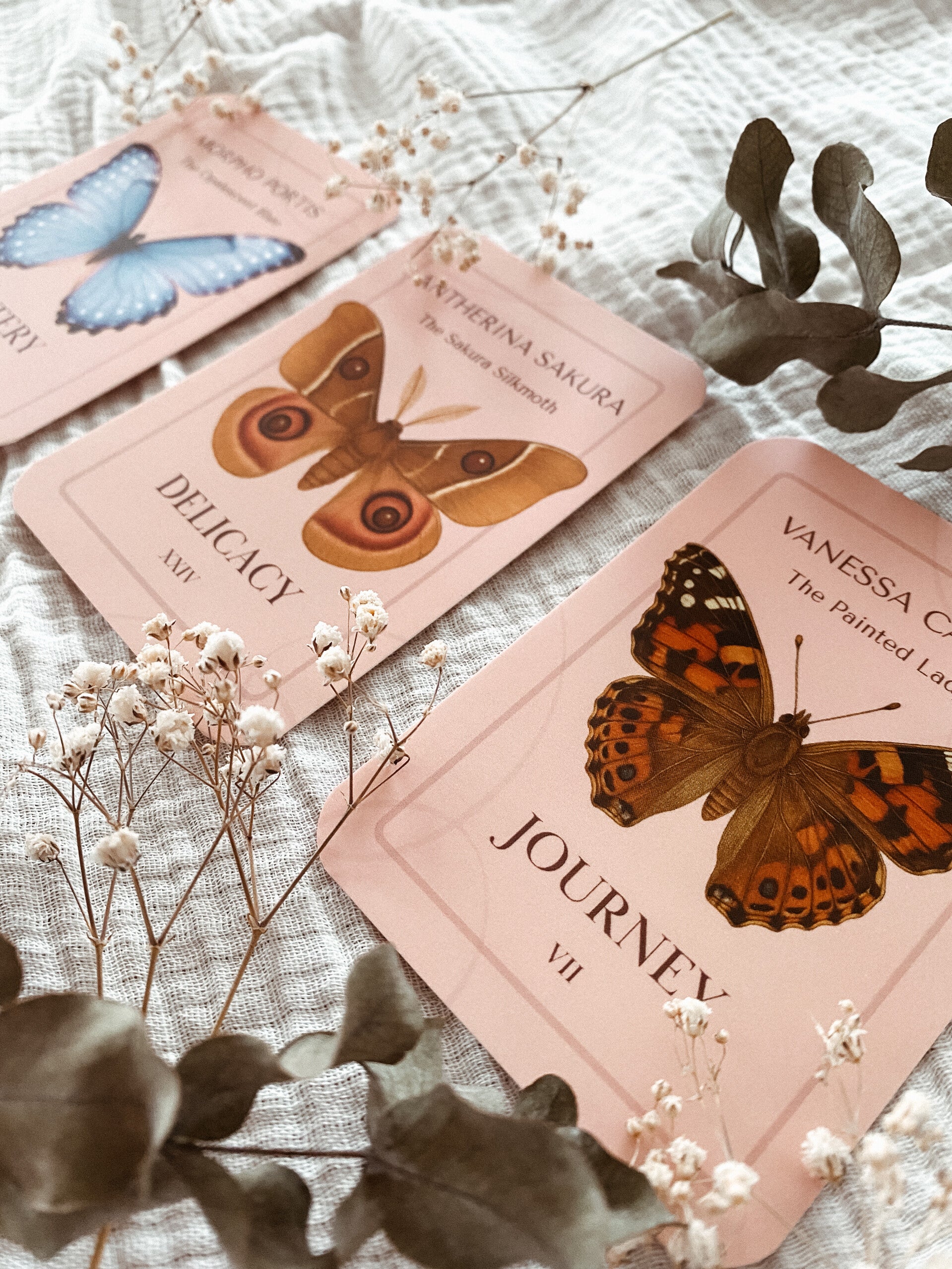 Maandenlang heb ik me verder verdiept in de wijsheid van de vlinders, hun unieke eigenschappen verkend, en me ondergedompeld in de verhalen van transformatie, veerkracht en schoonheid. Stapje voor stapje gaf ik dit deck vorm, zodat het niet alleen hun betekenis tot bij jou brengt, maar je ook de tools geeft om te reflecteren, je intuïtie te vertrouwen en bovenal je eigen creativiteit te verkennen en te ontdekken!